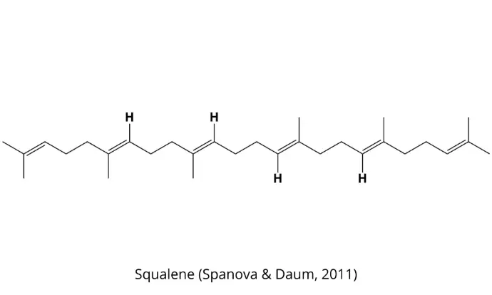 Squalene (2, 6, 10, 15, 19, 23-hexamethyltetracosa-2, 6, 10, 14, 18, 22-hexaene) is an intermediate molecule produced in the biosynthesis of sterols in animals and plants, as well as in the biosynthesis of hopanoids in certain types of bacteria. Squalene has been increasingly utilized, especially over the past decade, due to its diverse benefits. Squalene-based products are commonly found in the form of supplements, skincare products, and as a vaccine adjuvant.